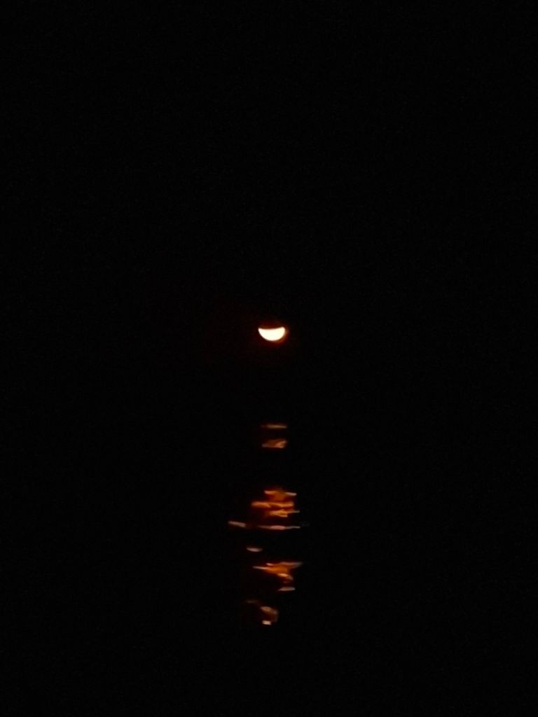 Notre vie à bord est scandée par les quarts de nuit – de 20h à minuit, de minuit à 4h, de 4h à 8h. Il faut guetter dans la pénombre, repérer les lumières alentour, esquiver les possibles collisions. Même au bord du monde, les Hommes manquent de se cogner dedans. Les premières nuit sont marquées par la lune. Son large oeil rond souffle sur la mer avec un visage familier. Sa douceur me rassure, c’est un phare souriant. Il y a des nuits où elle me surprend à se lever, rouge de vie, entre les mains lisses d’une vague. Parfois, elle part se cacher dans l’autre bout du ciel et l’encre de la nuit entoure le bateau et mes yeux. Seules les étoiles ponctuent encore le ciel de milliers d’étincelles. Certaines naissent si bas qu’elles paraissent se noyer dans la mer. Les plus espiègles jouent à se passer devant et filent en riant. Comme tant d’autres avant moi, je confonds le clignotement des étoiles avec les lumières des mâts. La voile du génois à l’avant du bateau semble montrer la voie en plein cœur de la nuit.