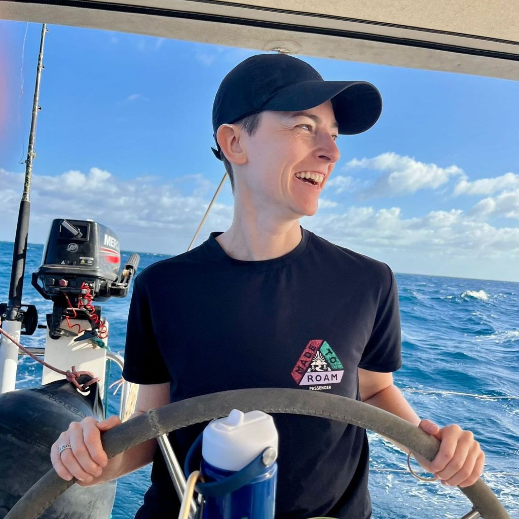 Lorsque mon quart m’entraîne aux confins de la nuit, je vois le ciel qui s’éclaircit. Timide, il commence par rougir. Puis ses couleurs se déploient. Le soleil s’extrait de l’eau, à côté de là où, plus tôt, s’est réveillée la lune. Le matin s’avère être un moment magique pour barrer. Quand le bateau est encore endormi, mes mains se placent sur la barre, je note le cap sur le compas, et prends en charge le tracé du voilier. Au fil du temps, les heures se marchent dessus et les rayons éparpillent leurs paillettes entre les plis de l’océan. Cette vision est pour moi synonyme de liberté : l’horizon brille de mille feux éclairant un passage rempli de promesses pour demain. L’après-midi s’écoule entre les plaisirs d’une sieste et la contemplation de l’océan. Des effluves de pain frais, de cuisine italienne, autrichienne ou française effleurent nos narines.