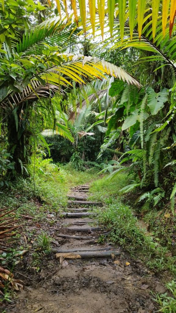 Avec Ana, nous parcourons deux des quatorze segments qui composent le Waitukubuli trail. Au bord des sentiers, la tête dans la forêt, nos doigts se rafraîchissent dans une rivière, nos pieds sautent sur des galets, nous refaisons le monde et tentons de nous y inscrire, d’un même élan. Sur le retour, nous insérons nos jambes dans la mer pour les faire respirer, puis les disposons à l’arrière d’un pick up pour les faire sécher au vent.