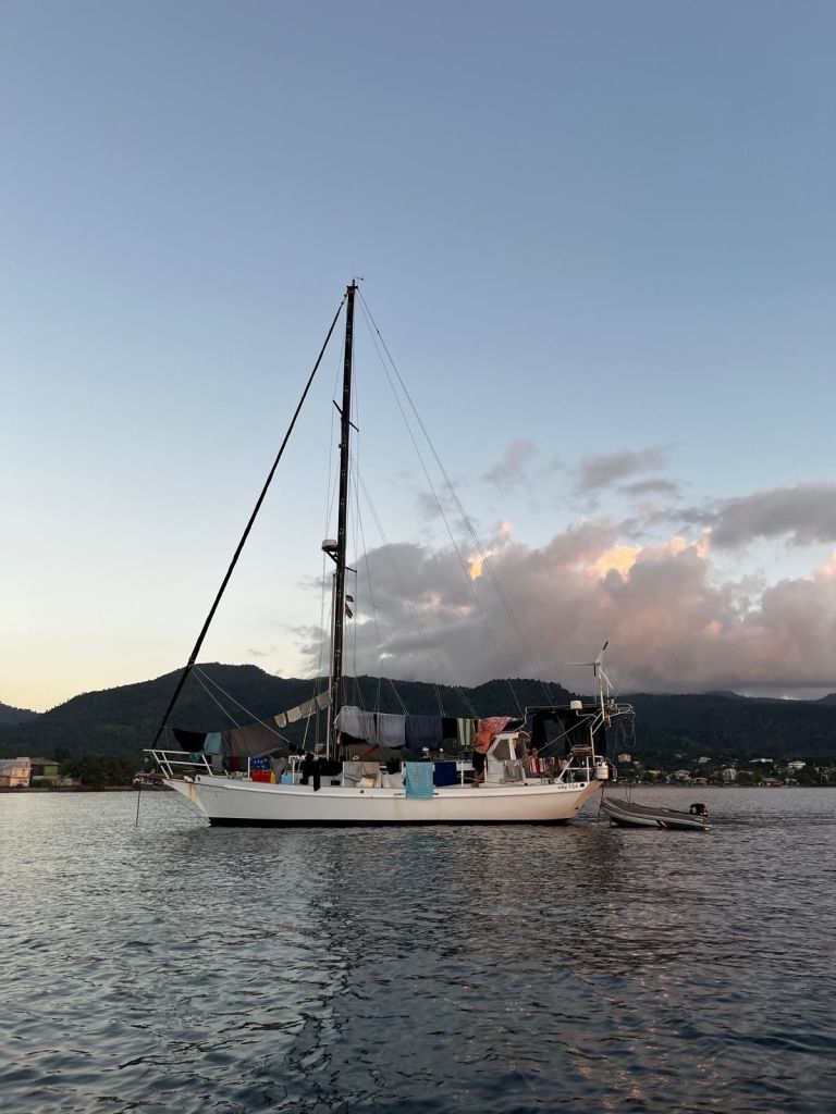 Le lendemain soir, je me crée une bulle juste pour moi. Allongée dans le bateau, je stylote mes impressions, musicalise mes sensations, je rêvasse mes émotions. Et puis, comme venue de nulle part, une idée qui surgit. J’en examine les possibilités. Rapidement j’en fais le tour, j’en trace les contours. En quelques minutes, l’idée m’apparaît non seulement comme logistiquement possible, mais aussi comme l’évidence même face à mon impasse sans fond. Je ferai une transatlantique retour pour relier les Antilles à la France. Cette solution m’apaise, je me sens à nouveau alignée dans mon voyage et dans mon cœur. L’Amérique latine attendra. Le voyage, lui, continue.